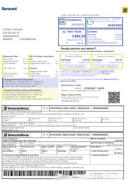 BRASIL BANCO DO BRASIL utility bill Word and PDF template download template file