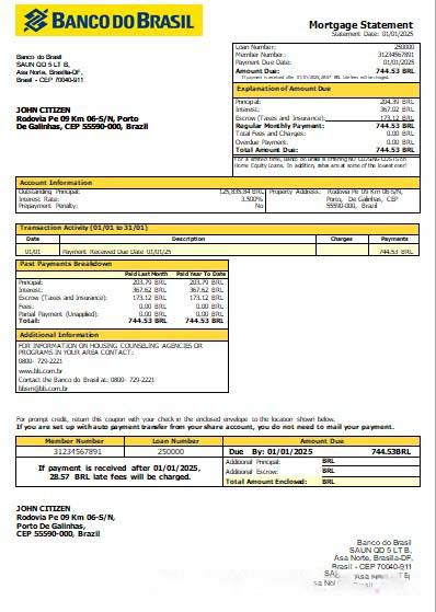 Brazil Banco do Brasil bank mortgage statement scr download template file
