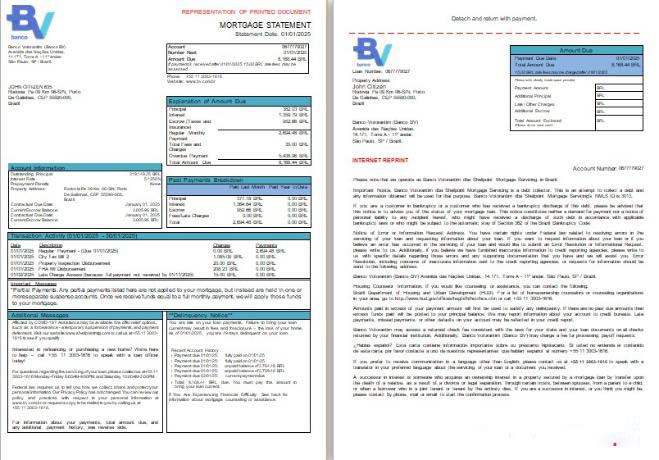 Brazil Banco Votorantim bank mortgage statement, 3 pages, 1 2 scr download template file