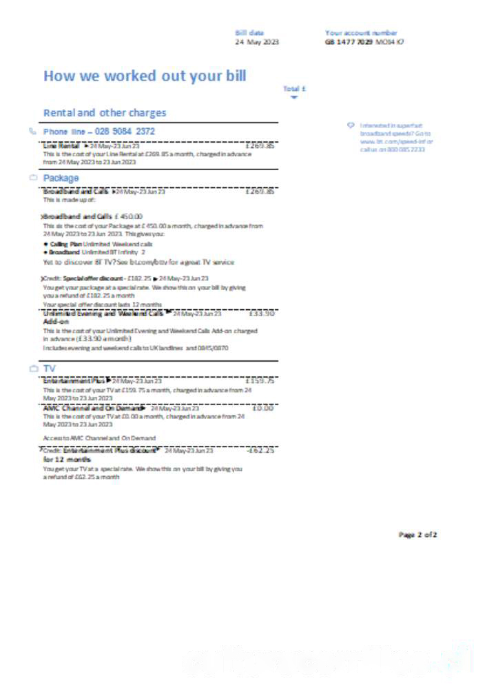 BT utility business bill, page 2 SCR download template file