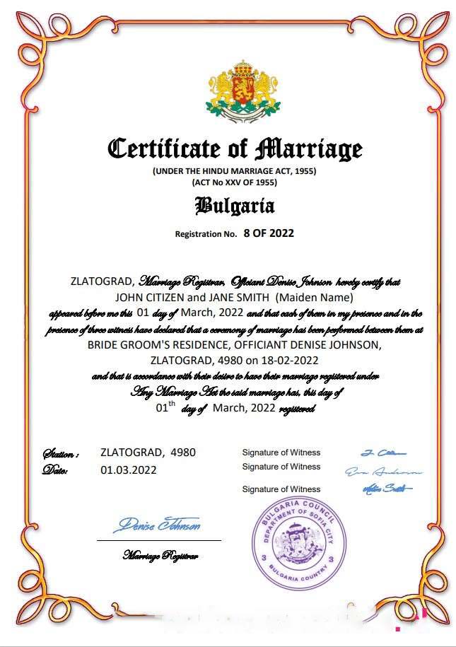 Bulgaria marriage certificate Word and PDF template download template file