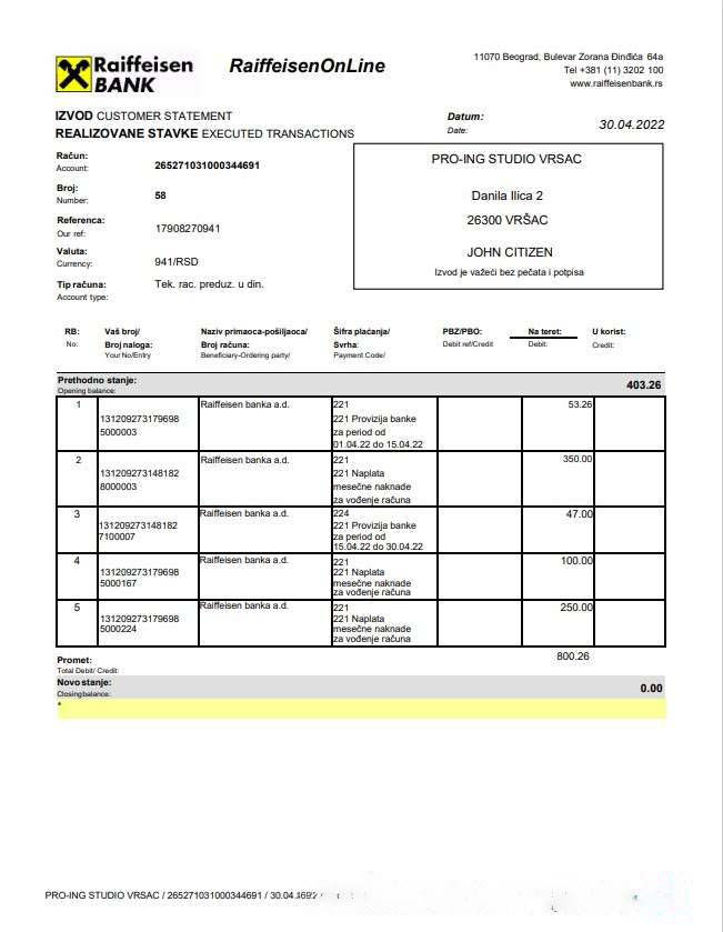 Bulgaria Raiffeisen bank statement version 2 download template file
