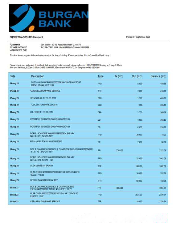 Burgan Bank enterprise account statement Word and PDF template download template file