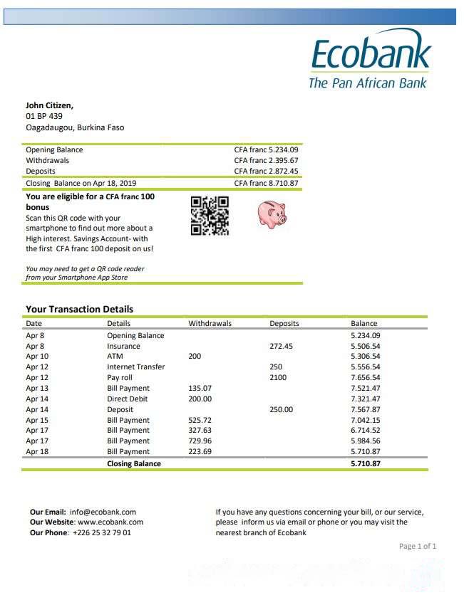 Burkina Faso Ecobank bank statement download template file