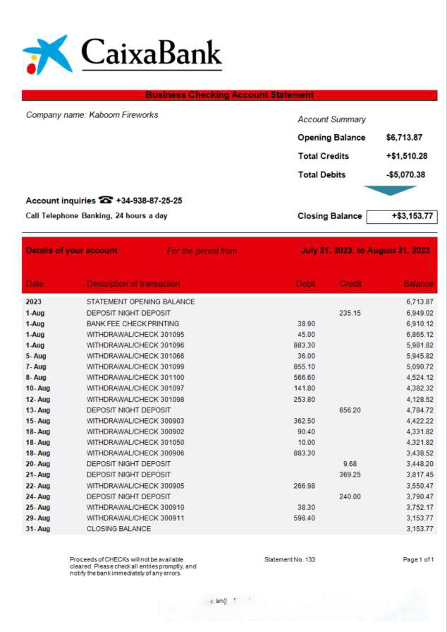 CAIXABANK company bank statement Word and PDF template download template file