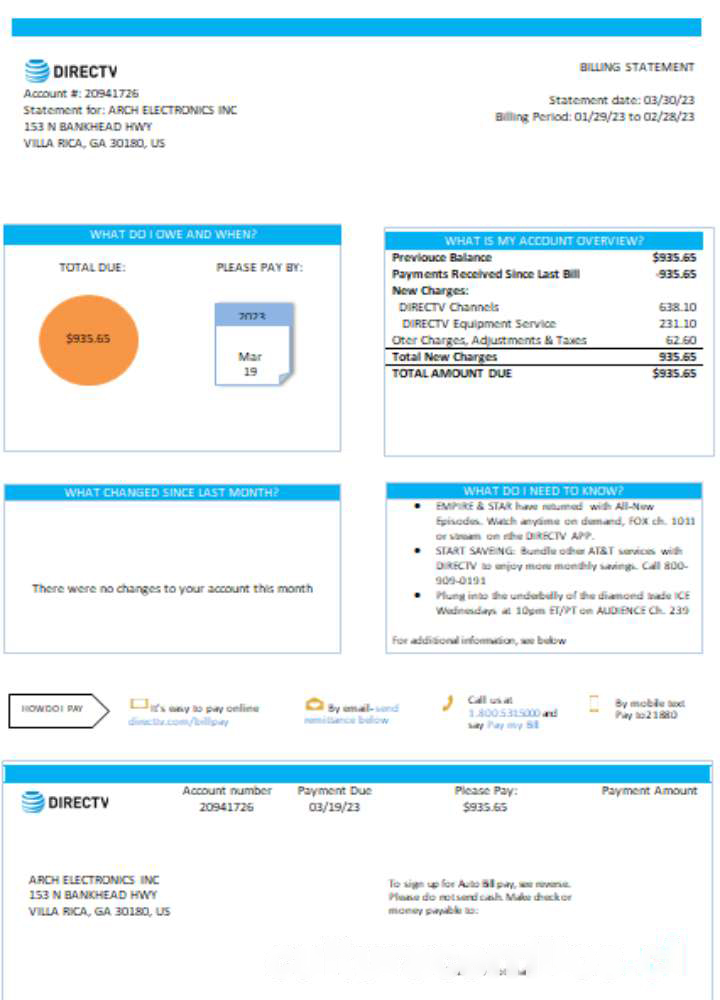 California Directv utility business bill, SCR download template file