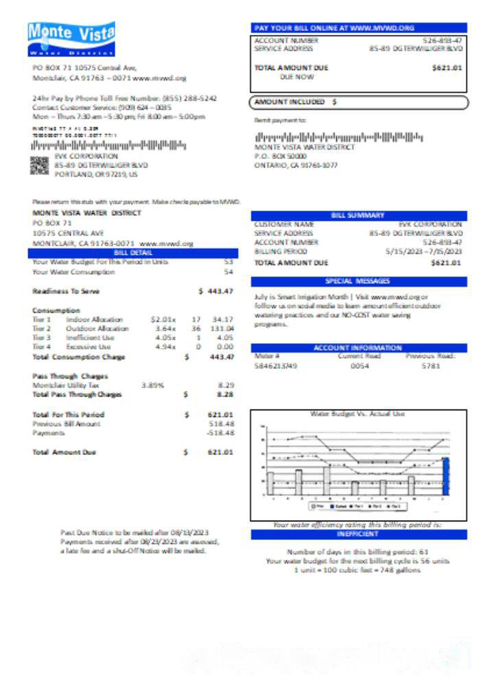 Be the first to review “California Monte Vista Water District utility business bill, SCR download template file”