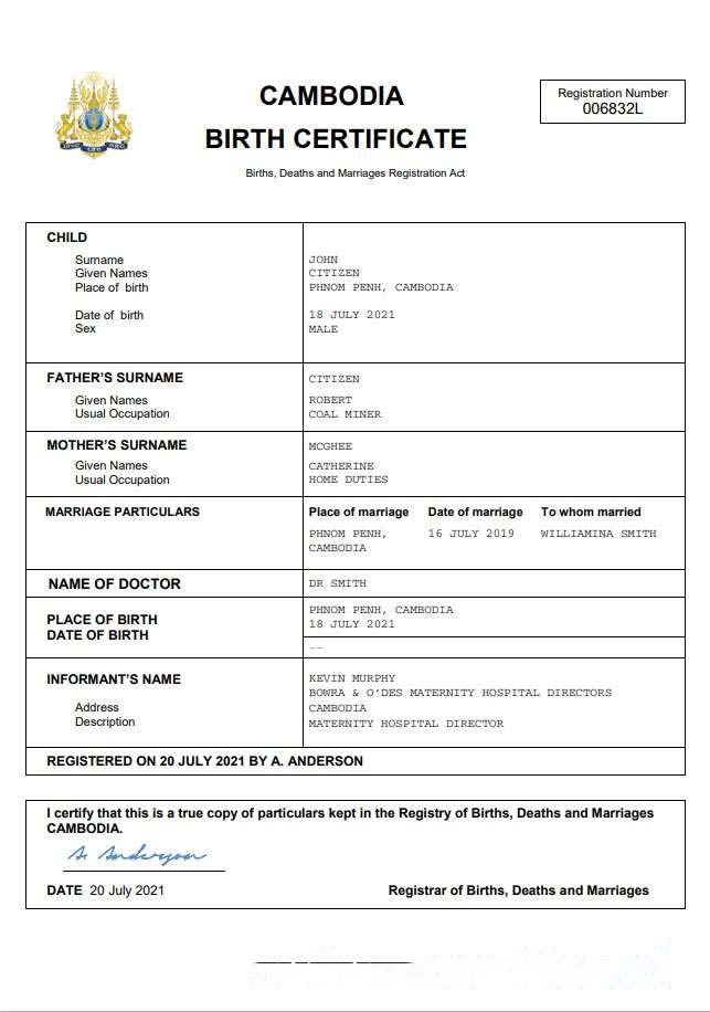 Cambodia birth certificate Word and PDF template download template file