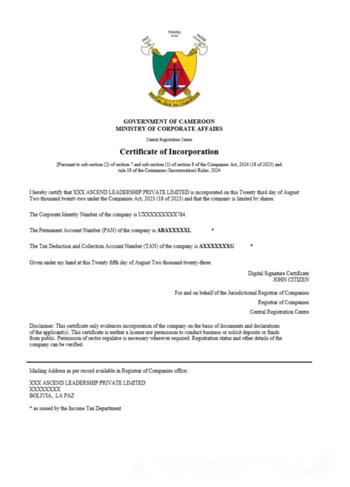 Cameroon certificate of registration Word and PDF template download template file