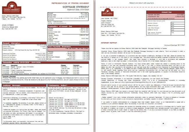 Canada Money Mentors (MM) bank mortgage statement, 3 pages, 1 2 scr download template file