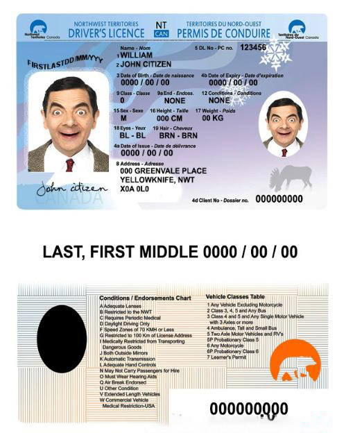 Canada Northwest Territories driver’s license download template file