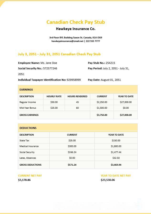 Canada Online Payslip Word and PDF template download template file