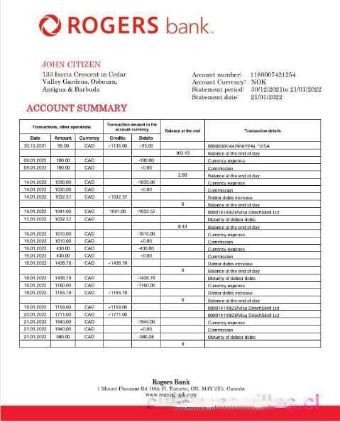 Canada Rogers bank statement download template file