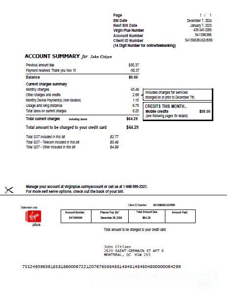 Canada Virgin Plus utility bill template in Word and PDF formats download template file