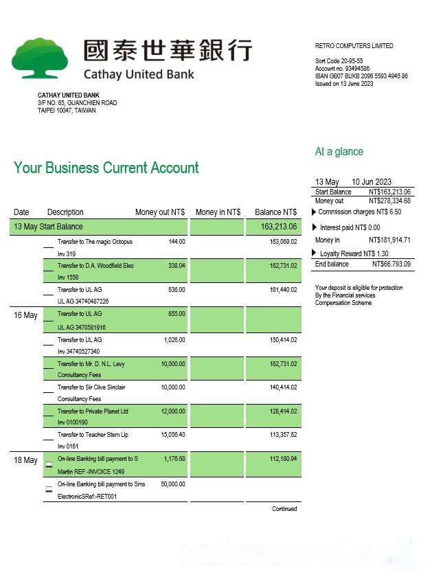 Cathay United Bank enterprise account statement Word and PDF template download template file