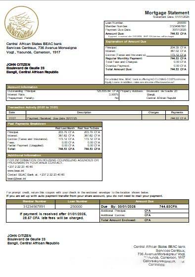 Central African Republic BEAC bank mortgage statement scr download template file