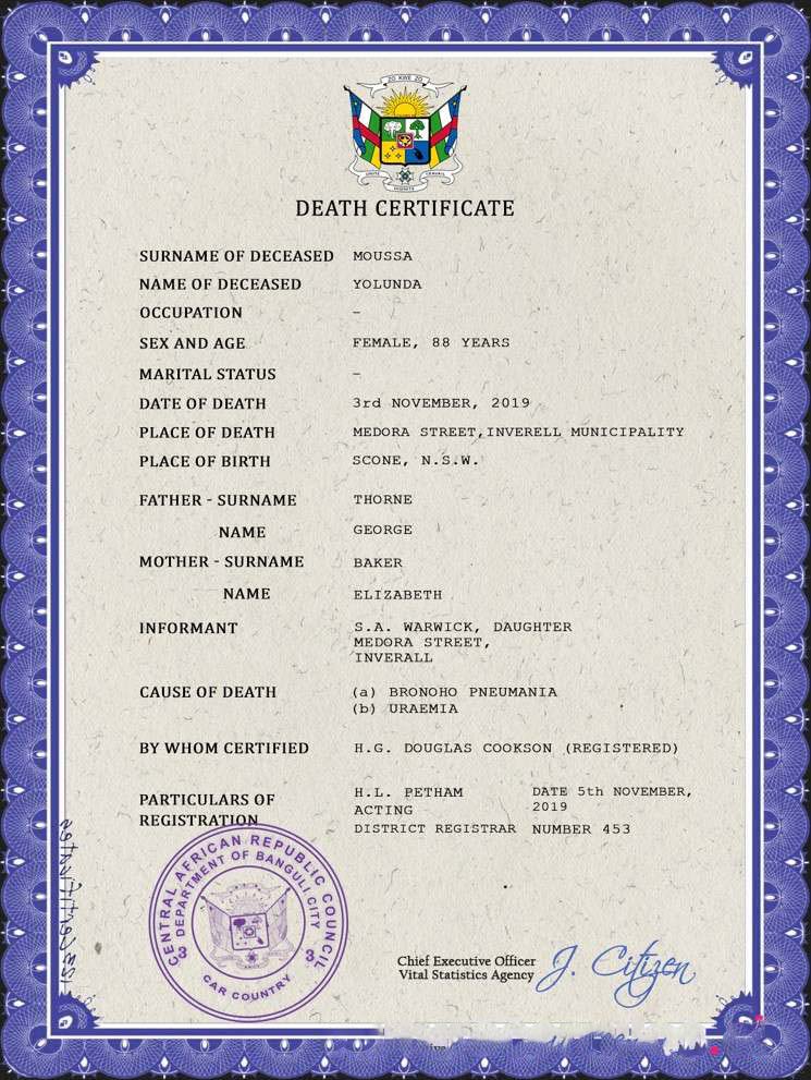 Be the first to review “Central African Republic death certificate PSD template download template file”