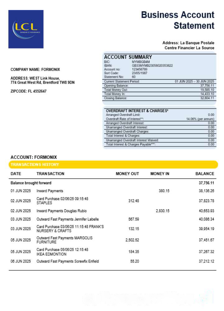 Centre National des Ch??ques Postaux company statement Word and PDF format download template file