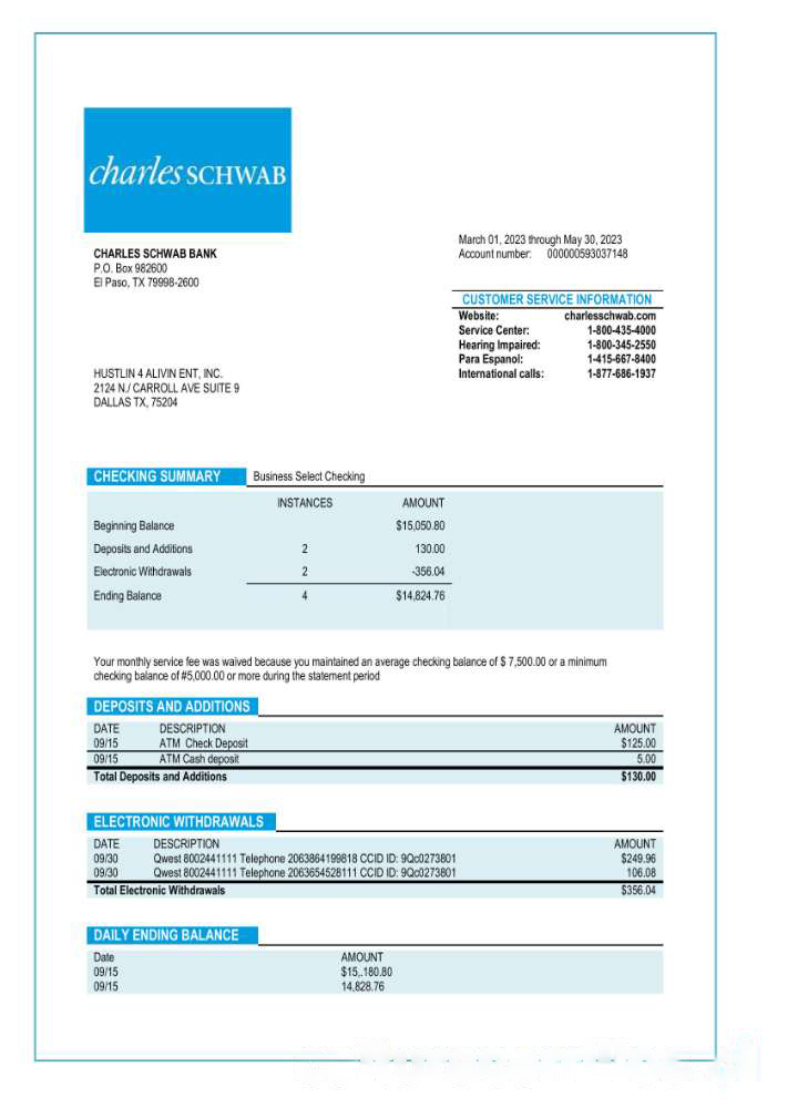 Be the first to review “Charles Schwab business bank statement Word and PDF template download template file”