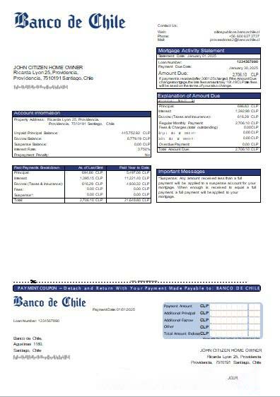 Be the first to review “Chile Banco de Chile bank mortgage statement scr download template file”