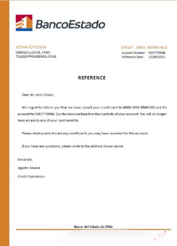 Chile Banco del Estado closure reference download template file
