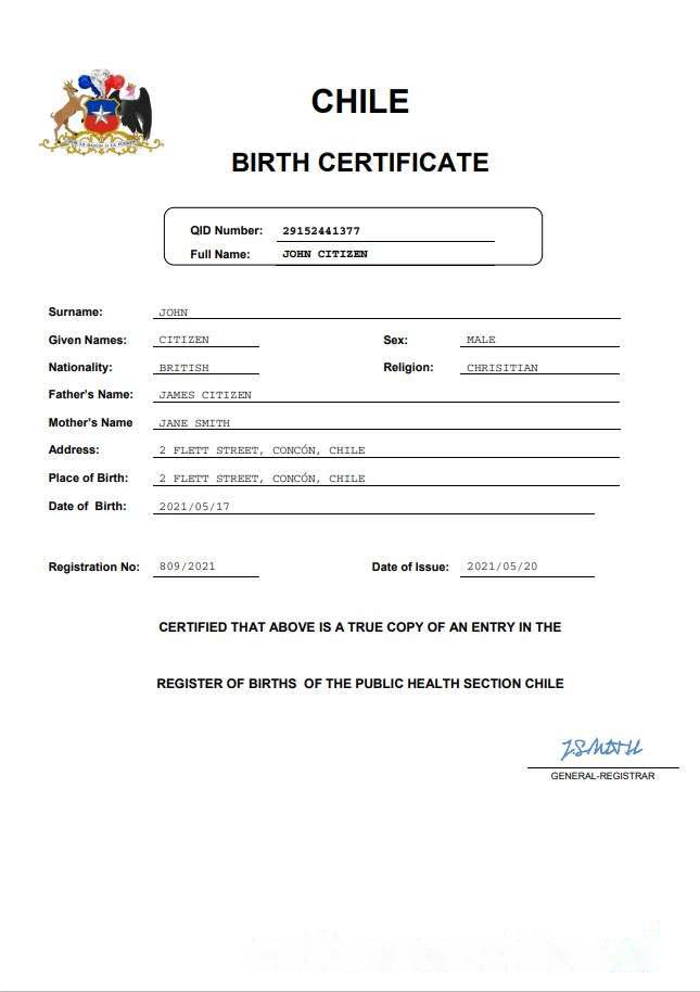 Be the first to review “Chile vital record birth certificate Word and PDF template download template file”