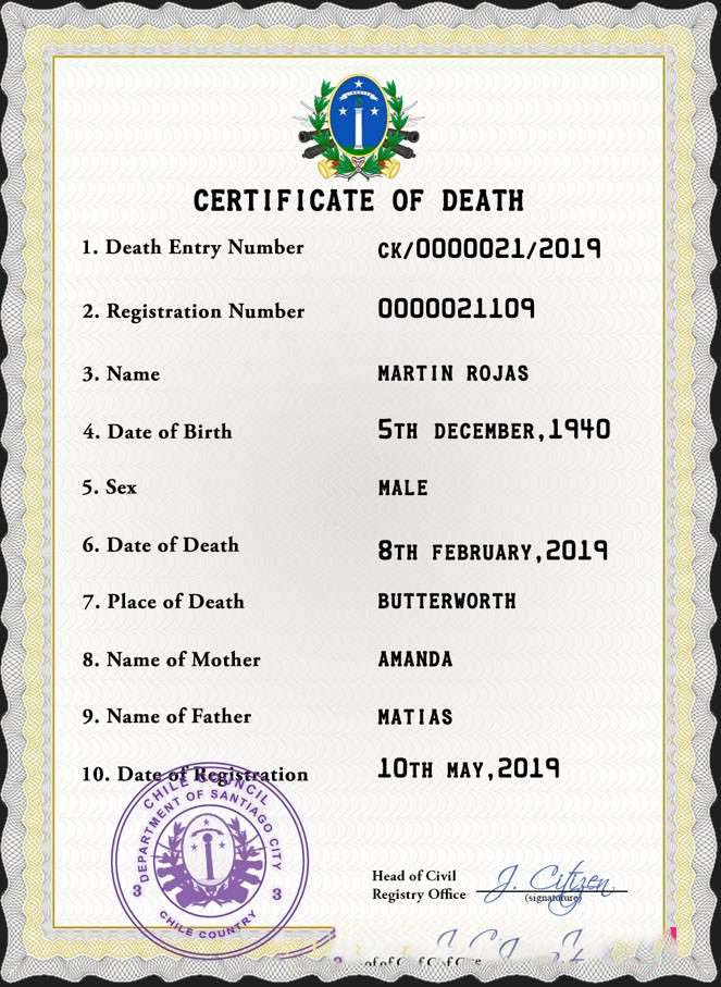 Chile vital record death certificate PSD template download template file