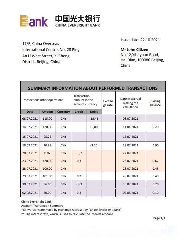 China Everbright Bank statement download template file