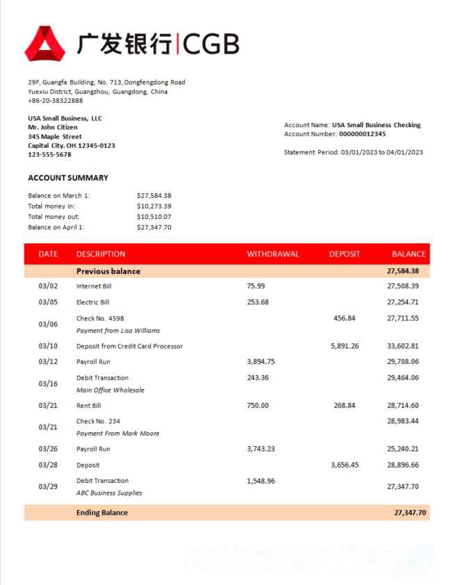 Be the first to review “China Guangfa Bank company statement Word and PDF template download template file”