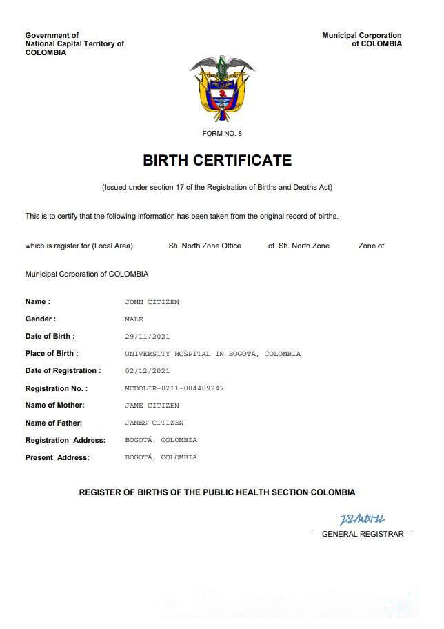Be the first to review “Colombia vital record birth certificate Word and PDF template download template file”
