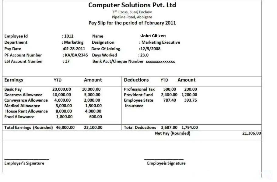 Computer corporation payroll template in Excel and PDF formats download template file