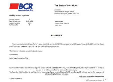 Costa Rica The Bank of Costa Rica closure reference download template file