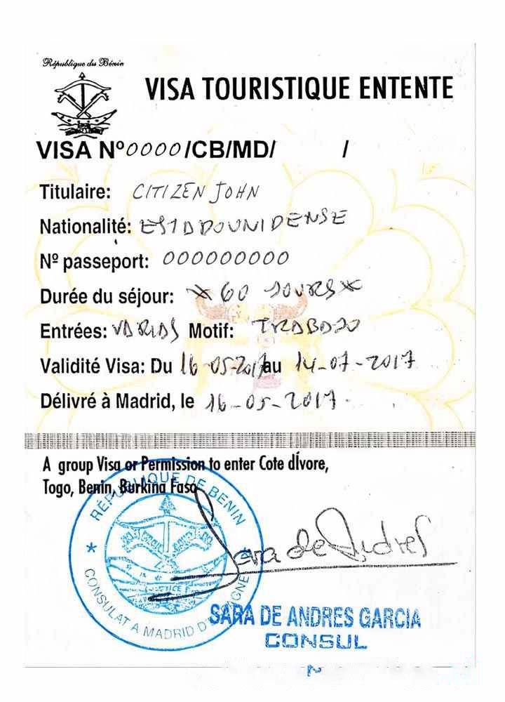 COTE D’IVOIRE, TOGO, BENIN, BURKINA FASO tourist visa download template file