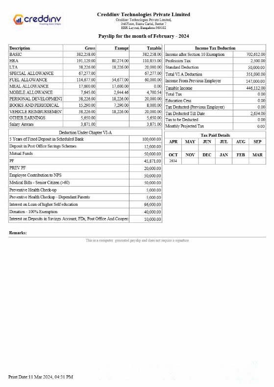 Creative company earning statement in Word and PDF formats download template file