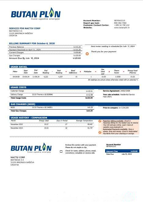 Croatia BUTAN PLIN doo gas business utility bill template in word and pfd formats download template file