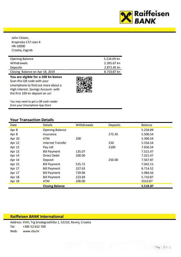 Be the first to review “Croatia Raiffeisen Bank statement download template file”