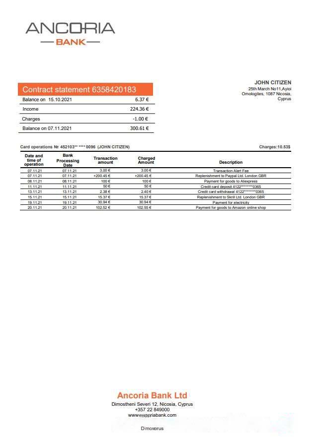 Cyprus Ancoria bank statement download template file