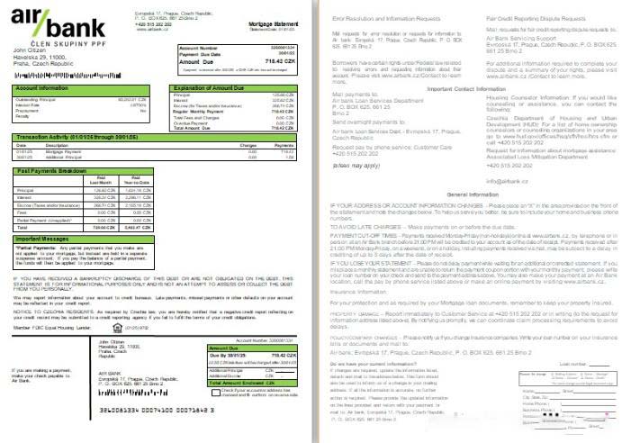 Czechia Air bank mortgage statement, 2 pages, 1 2 scr download template file
