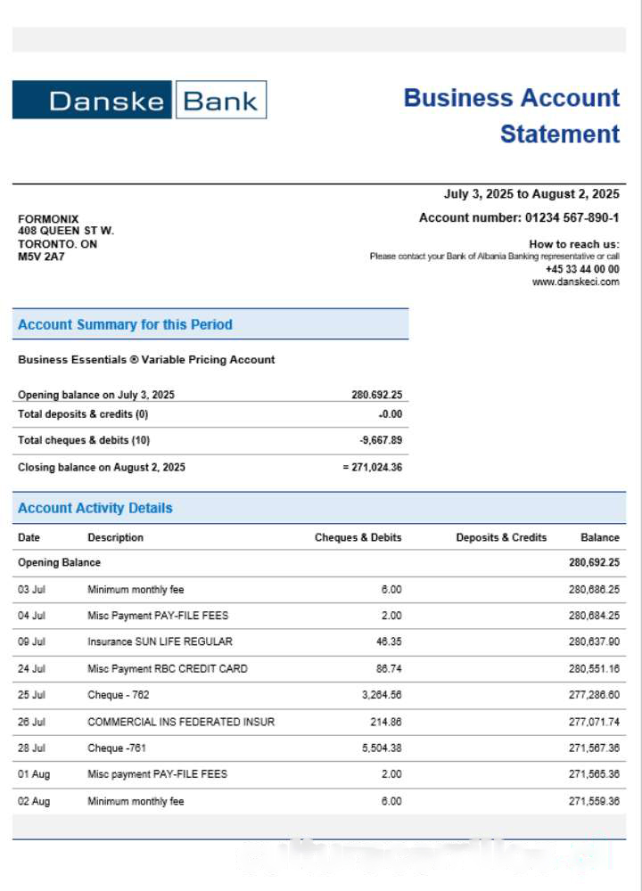 Be the first to review “Danskebank business organization checking statement Word and PDF format download template file”