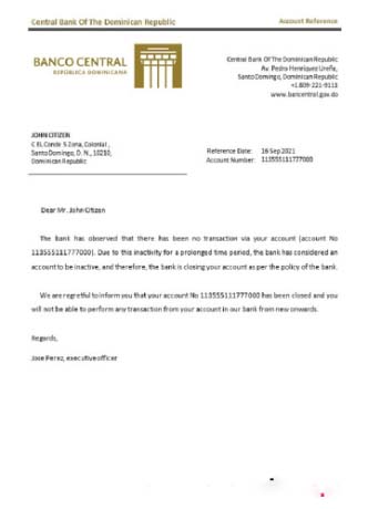 Dominica Central Bank closure reference download template file