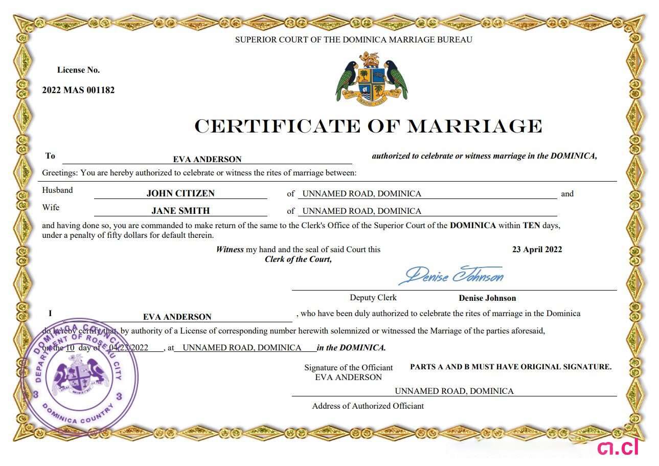 Dominica marriage certificate Word and PDF template download template file