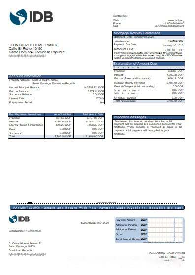 Dominican Republic Bid bank mortgage statement scr download template file