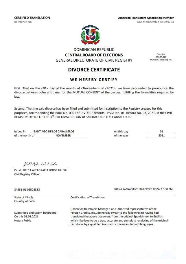 Be the first to review “Dominican Republic divorce certificate template in Word format download template file”