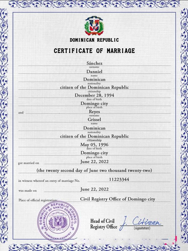 Dominican Republic marriage certificate PSD template download template file