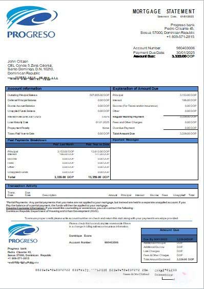 Dominican Republic Progreso bank mortgage statement scr download template file