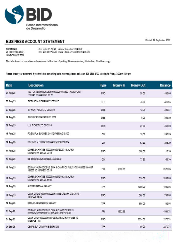 Ecuador Banco Interamericano de Desarrollo (BID) firm account statement Word and PDF format download template file