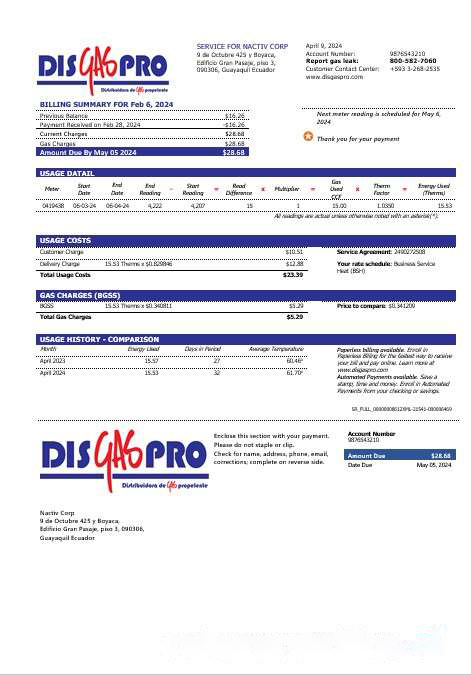 Ecuador Disgaspro gas business utility bill template in Word and pdf formats download template file