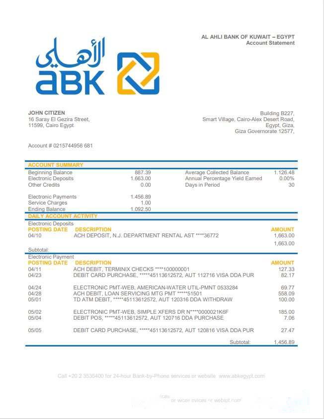 Egypt Al Ahli Bank of Kuwait Egypt download template file