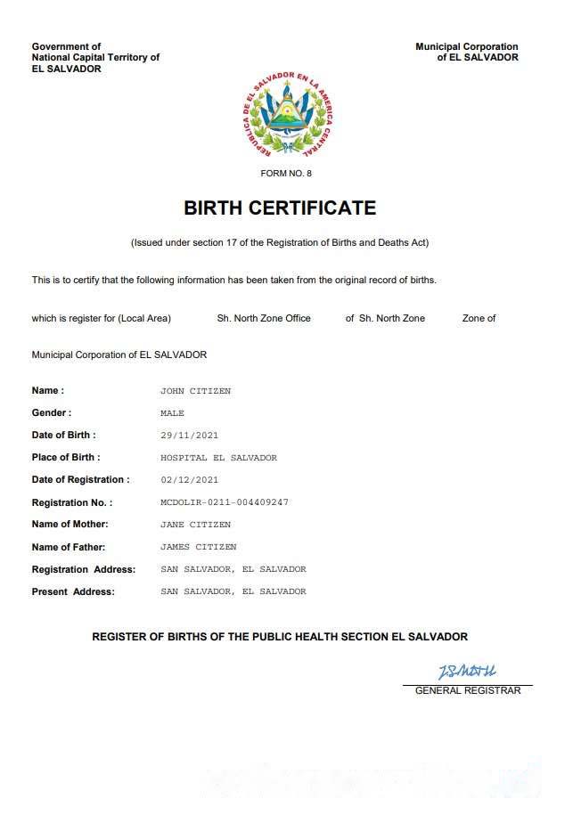 El Salvador vital record birth certificate Word and PDF template download template file