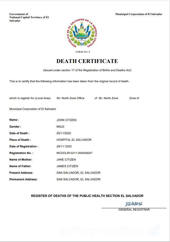 Be the first to review “El Salvador vital record death certificate Word and PDF template download template file”